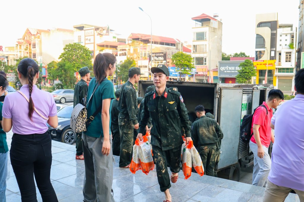 Còn ở phường Phan Đình Phùng – khu vực ngập sâu nhất của tỉnh, mặc dù khi đoàn đến, nước cũng vừa rút, nhưng hậu quả của đợt ngập sâu là tài sản, nhà của, đồ đạc của bà con ở tầng 1 hầu như không còn dùng được, đường phố còn ngập nhẹ, bùn đất, rác bẩn ngập tràn, các chiến sỹ bộ đội, công an đang cùng bà con nạo vét, khắc phục sau lũ. Đoàn đã ngay lập tức phối hợp với chính quyền địa phương để vận chuyển phân phát những phần quà nhu yếu phẩm về địa điểm tập kết nhằm chuẩn bị cấp phát ngay nhằm tiếp thêm sức lực, hỗ trợ người dân khắc phục hậu quả sau khi nước rút.