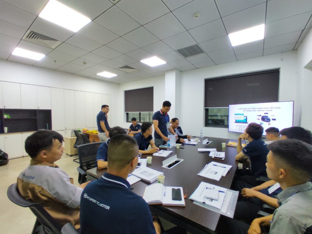 Từ ngày 18-21/07/2023, HTCV tổ chức khóa đào tạo chẩn đoán mạng thông tin liên lạc CAN-BUS và điện thân xe trên xe Solati tại Nhà máy Ninh Bình và Hyundai Nguyên Gia Phát, với sự góp mặt của 32 kỹ thuật viên đến từ 20 đại lý trên toàn quốc.