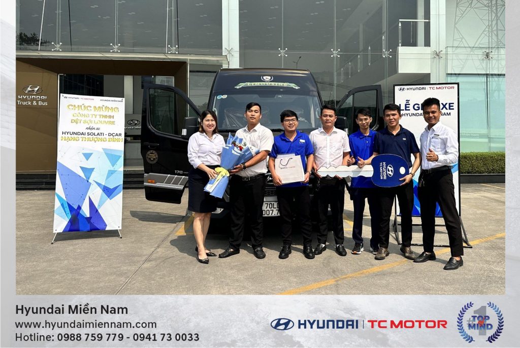 Ngay sau đó, Hyundai Miền Nam cũng đã bàn giao thành công xe Hyundai Solati – Dcar hạng thượng đỉnh cho Công ty TNHH Dệt sợi Louvre vào ngày 12/01/2024.