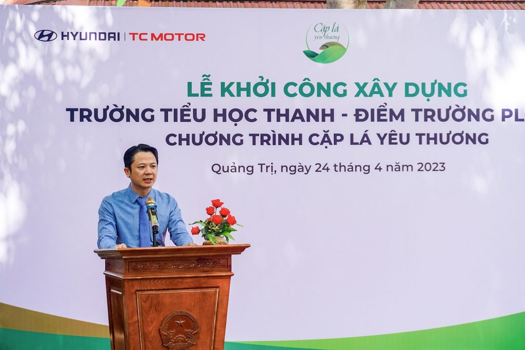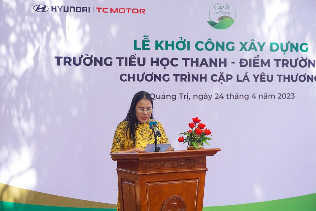 Phát biểu tại lễ Khởi công, cô Nguyễn Thị Thủy, hiệu trưởng nhà trường chia sẻ: “Món quà của công ty Hyundai Thành Công và chương trình Cặp lá yêu thương đã khơi dậy và tiếp nối truyền thống về lòng biết ơn và tri ân đến quý thầy cô giáo, cán bộ, nhân viên đã và đang công tác tại Trường. Với khẩu hiệu của chương trình là “trao cơ hội đi học, cho cơ hội đổi đời” là nguồn động viên rất lớn đến quý thầy cô giáo, đồng thời củng cố niềm tin, khích lệ, nuôi dưỡng ước mơ, hoài bão của các em học sinh trong nhà trường”.