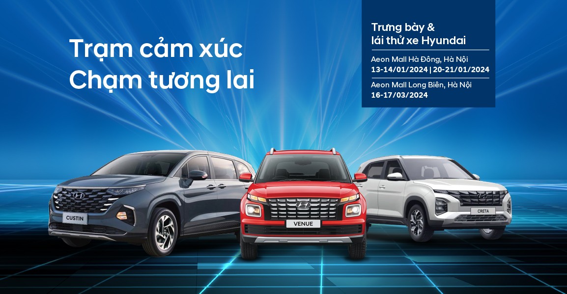 Trong quý I/2024, Liên doanh ô tô Hyundai Thành Công Việt Nam (HTV) tổ chức chương trình trưng bày xe Hyundai “Trạm cảm xúc – Chạm tương lai” tại các TTTM Aeon mall ở Hà Nội với mong muốn mang đến cho khách hàng những trải nghiệm chân thực nhất về các mẫu xe thương hiệu Hyundai mới ra mắt tại Việt Nam.