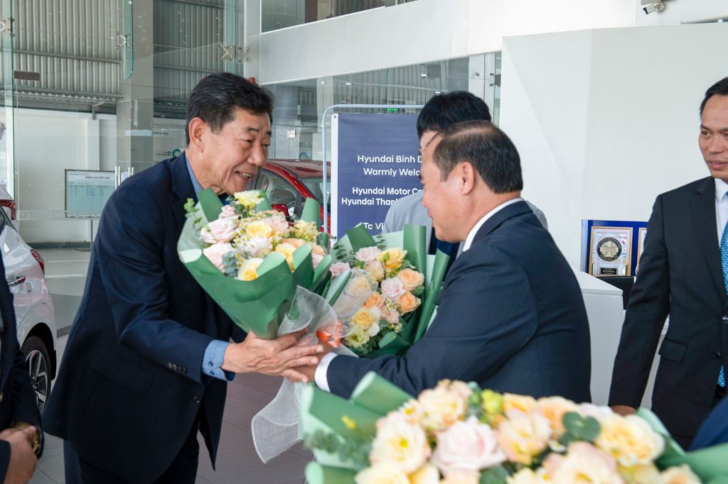 Cũng trong lịch trình làm việc cùng ngày, Đoàn Lãnh đạo cấp cao HMAP đã tới thăm Đại lý Hyundai Bình Dương cùng Ban Lãnh đạo HTV. Đoàn đã đến thăm quan không gian cơ sở bán hàng, xưởng dịch vụ của Đại lý.