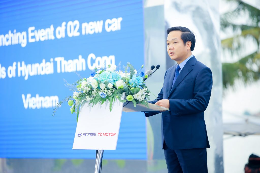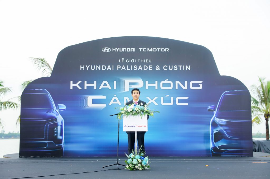 Ông Nguyễn Anh Tú – Tổng Giám đốc Liên doanh ô tô Hyundai Thành Công Việt Nam phát biểu tại lễ giới thiệu 2 mẫu xe Hyundai Custin và Hyundai Palisade