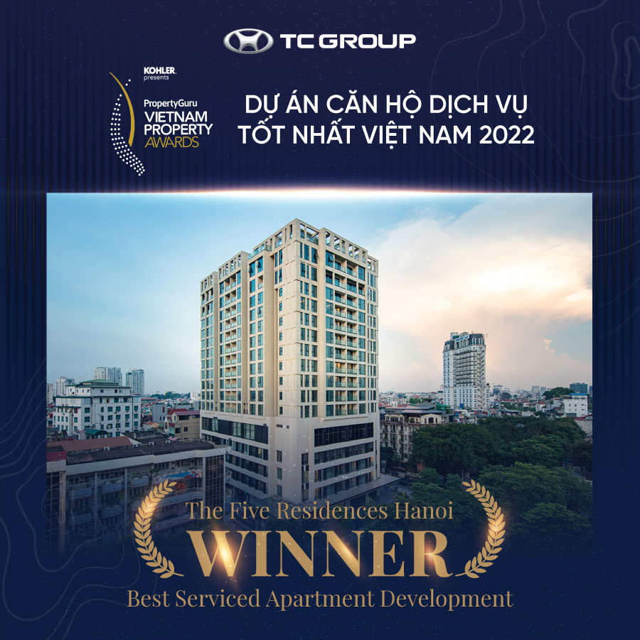 Vượt qua nhiều ứng cứ viên “nặng ký”, The Five Residences Hanoi và The Five Hotels & Resort Quangnam Danang (bao gồm Shilla Monogram và The Five Villas & Resort Quangnam Danang) của TC Group đã lần lượt được xướng tên ở 2 hạng mục quan trọng là Dự án căn hộ dịch vụ tốt nhất Việt Nam 2022 (Best Serviced Apartment Development) và Top 2 Khu nghỉ dưỡng tích hợp tốt nhất Việt Nam 2022 (Best Integrated Resort Development – Highly Commended).