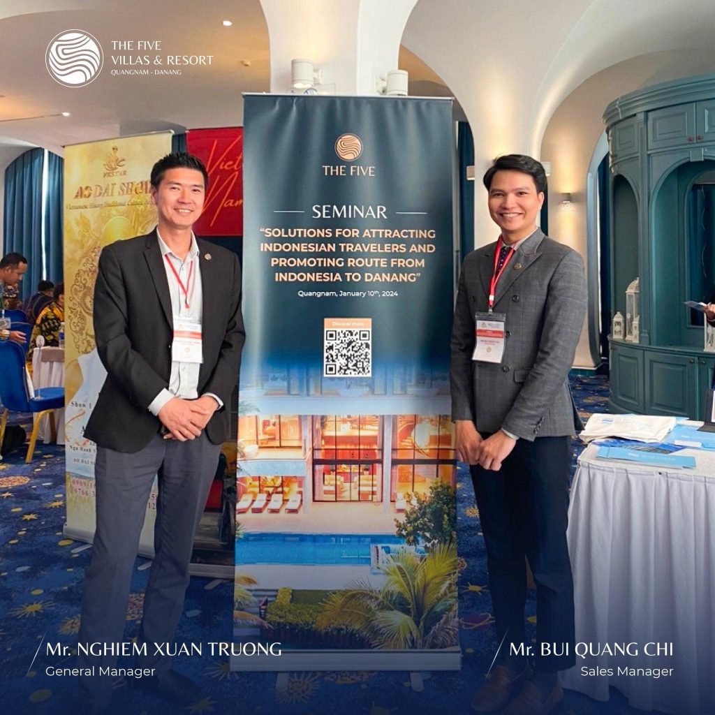 Với tư cách là đối tác chiến lược của Sở Du lịch Đà Nẵng, đại diện The Five Villas & Resort Quangnam Danang – ông Nghiêm Xuân Trường, Tổng quản lý khách sạn, đã tham gia tọa đàm và chia sẻ về những tiềm năng, lợi thế của Đà Nẵng trong lĩnh vực du lịch và kết nối với các doanh nghiệp lữ hành Indonesia để thúc đẩy hợp tác giữa hai bên.