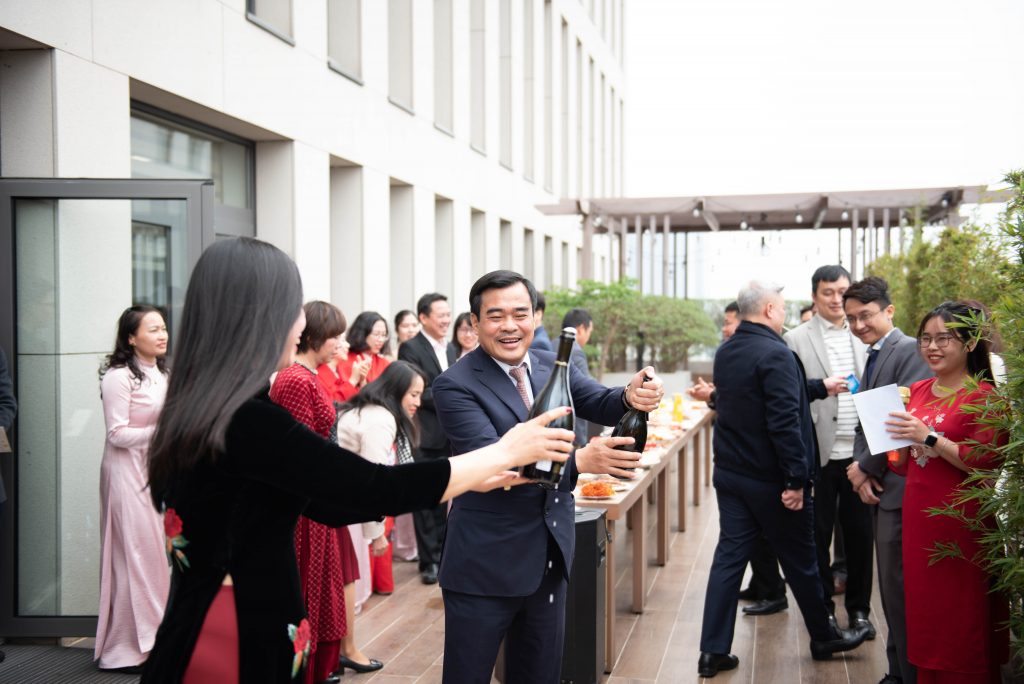 Tiếng nổ của rượu vang, tiếng vỗ tay, tiếng nói cười đã tạo nên niềm hân hoan đầu năm mới trong mỗi người Thành Công. Bên cạnh đó, những bao lì xì trao tặng may mắn trong ngày đầu năm và cùng chúc nhau những lời chúc mạnh khỏe, hạnh phúc, hoàn thành xuất sắc kế hoạch, mở đầu cho một năm mới với khí thế mới và thành công mới.