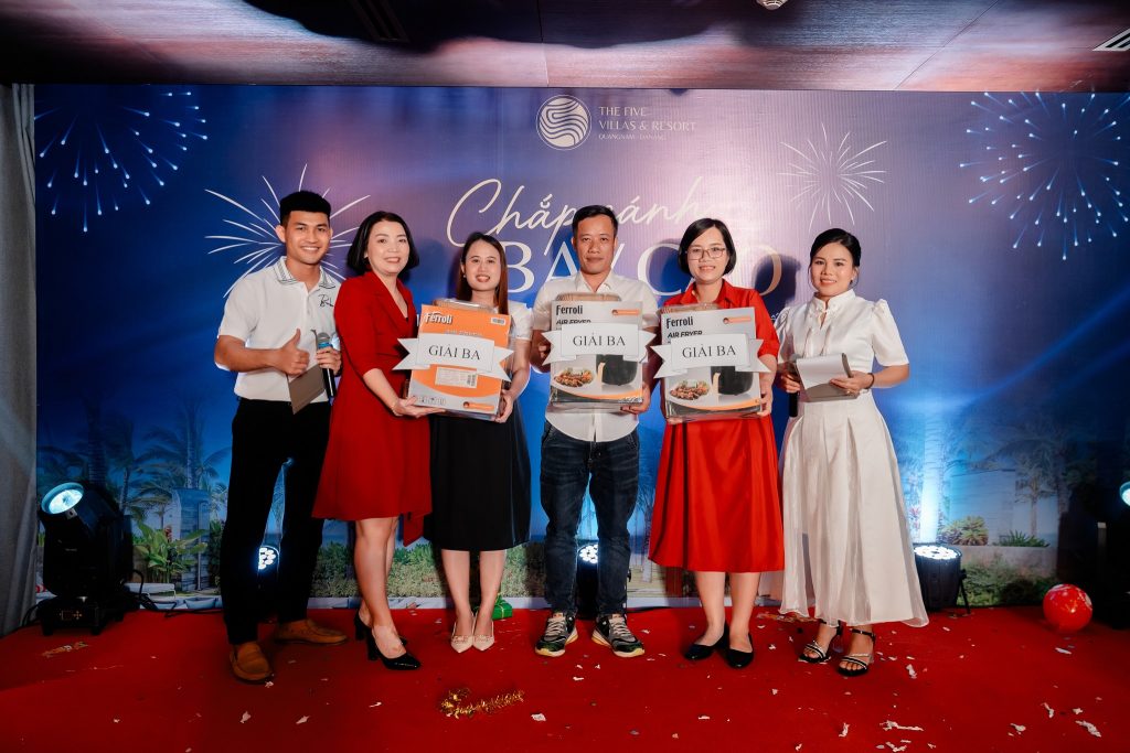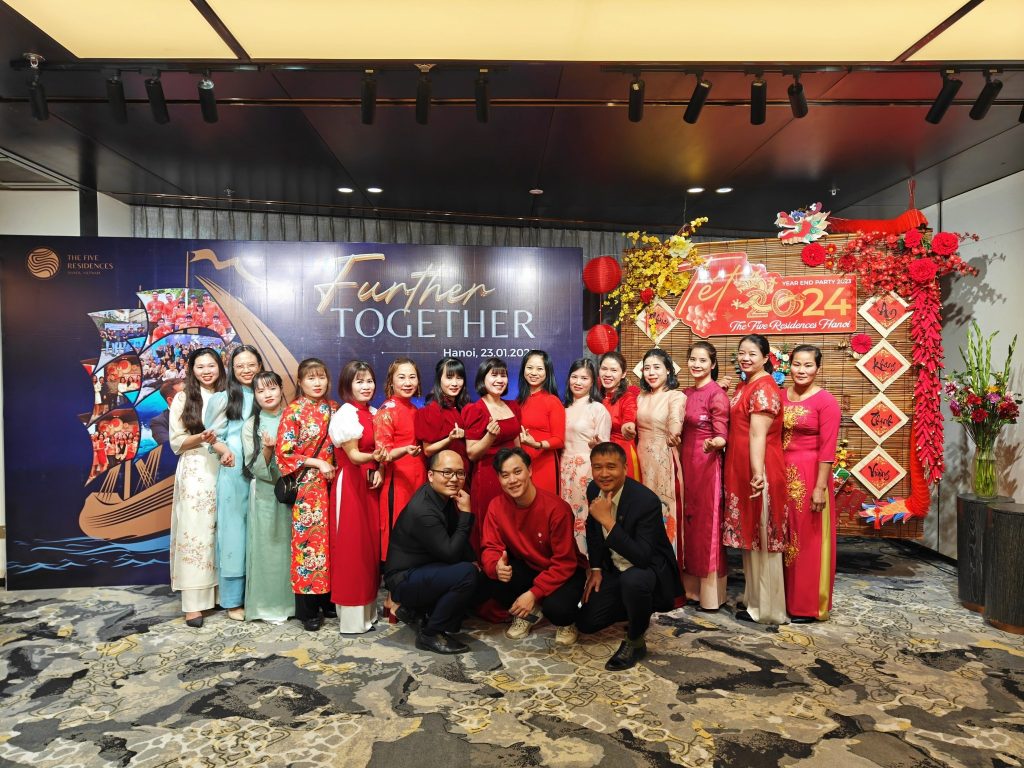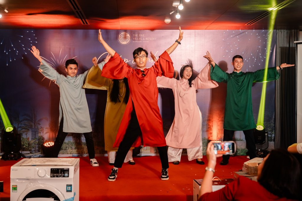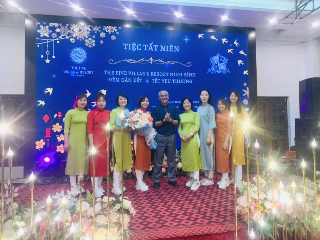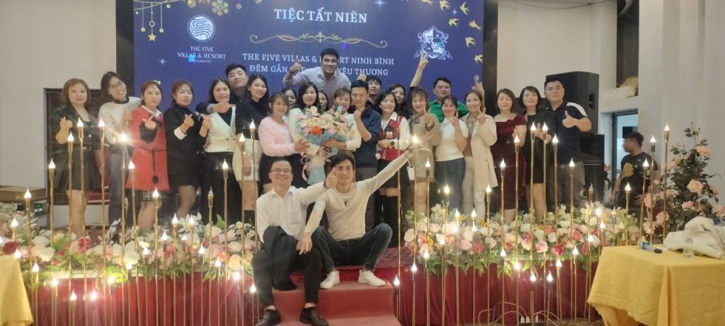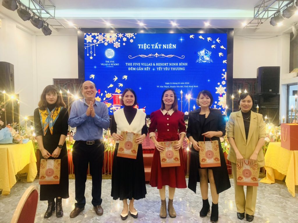 Ngày 15/1/2024, The Five Villas & Resort Ninh Binh cũng đã tổ chức bữa tiệc tất niên ấm cúng cho toàn thể CBNV. Trong không gian sum vầy của bữa tiệc, các lãnh đạo và CNBV đã có những chia sẻ chân thành, ấm áp. Đơn vị cũng đã dành tặng những món quà đặc biệt thông qua chương trình bốc thăm may mắn.