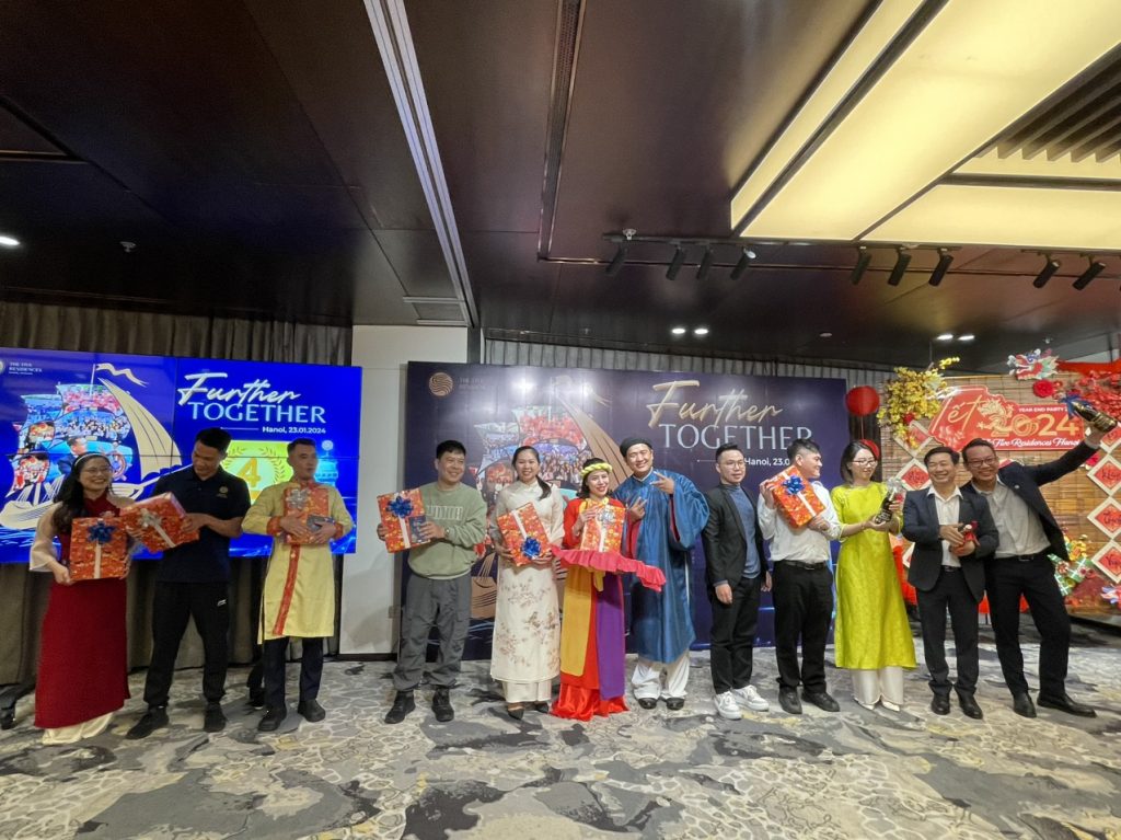 Chương trình đã vinh danh các cá nhân, tập thể có thành tích xuất sắc trong năm 2023. Bữa tiệc “Further Together” càng hào hứng hơn khi có các tiết mục văn nghệ đặc sắc như: Tiết mục “Ngày xuân long phụng sum vầy” – Tốp ca SEC, diễn xướng múa hát ” Cô đôi vui vẻ The Five” – Tốp ca HK, nhạc kịch “Như hoa mùa xuân” – Kết hợp KIT và FB,…