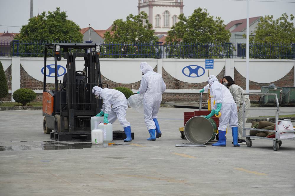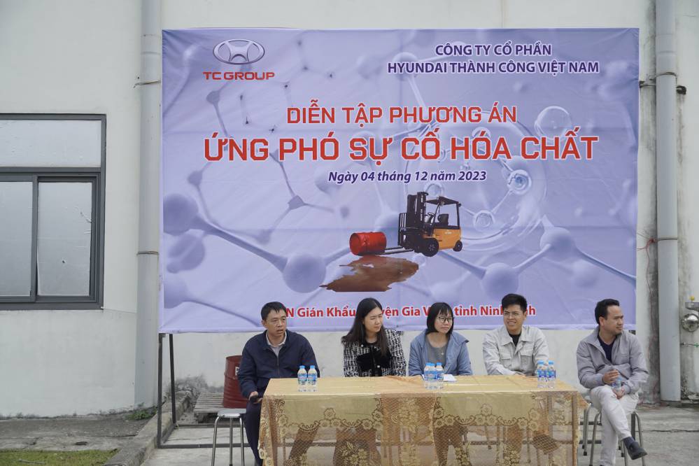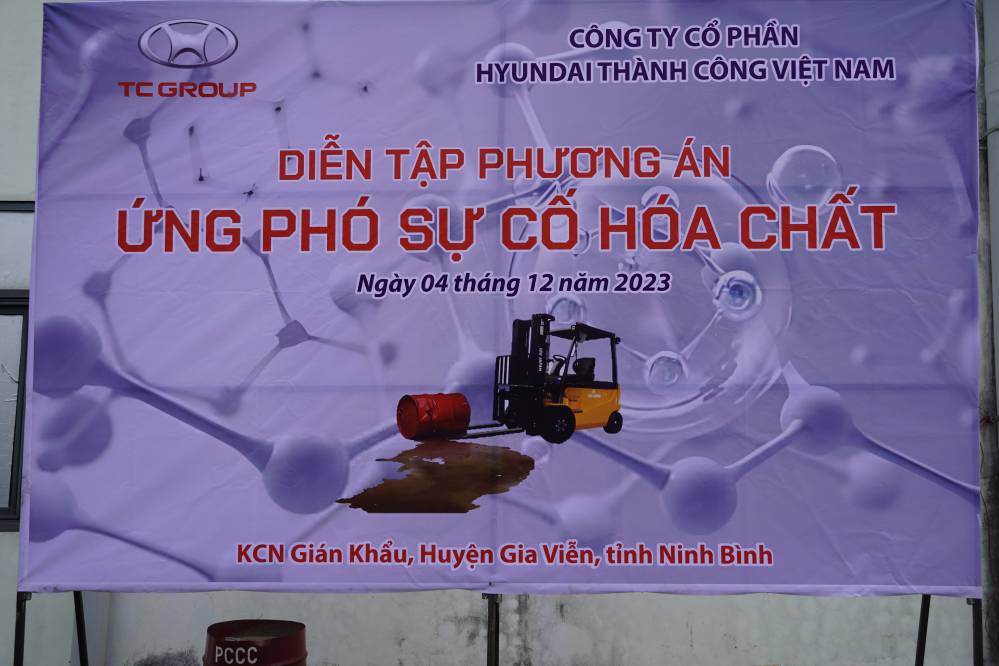 Trong buổi sáng ngày 04/12/2023; Công ty CP Hyundai Thành Công Việt Nam (HTC) tổ chức hoạt động huấn luyện An toàn cho các CBCNV trong nhà máy về ứng phó sự cố hóa chất (ƯPSCHC) nhằm góp phần nâng cao kiến thức, kỹ năng nghiệp vụ cho các CBCNV khi làm việc và tiếp xúc trực tiếp với hóa chất. Về dự buổi diễn tập có sự hiện diện của Đại diện Sở Công thương Tỉnh Ninh Bình.
