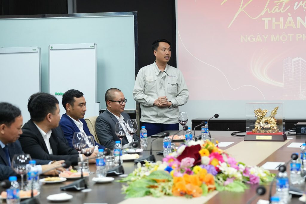 Tại buổi chúc Tết các đơn vị Khối ô tô thuộc KCN Gián Khẩu, Ninh Bình, anh Phạm Quốc Điệp – Trưởng Phòng Quản lý Vật tư và Điều hành sản xuất Công ty CP Hyundai Thành Công Việt Nam (HTC) đại diện cho Cán bộ Công nhân viên tại KCN Gián Khẩu gửi lời cảm ơn sâu sắc đến Ban Lãnh đạo Tập đoàn đã dành những lời khen cho tập thể Cán bộ Công nhân viên khi đạt được những kết quả tốt trong năm 2023, đồng thời luôn quan tâm, chỉ đạo, tạo điều kiện thuận lợi để HTC nói riêng và các đơn vị thành viên nói chung nỗ lực, quyết tâm hoàn thành tốt nhiệm vụ, kế hoạch được giao.