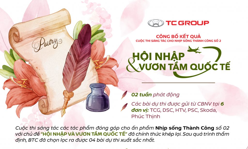 Vậy là sau 2 tuần phát động, rất nhiều bài dự thi từ CBNV của các đơn vị thành viên thuộc TC Group đã được gửi về. Sau thời gian thẩm định, BTC đã chọn ra được 04 tác phẩm xuất sắc nhất để trao giải và đưa vào đăng tải trên ấn phẩm “Nhịp sống Thành Công” số 02, dự kiến ra mắt vào cuối tháng 7/2023.