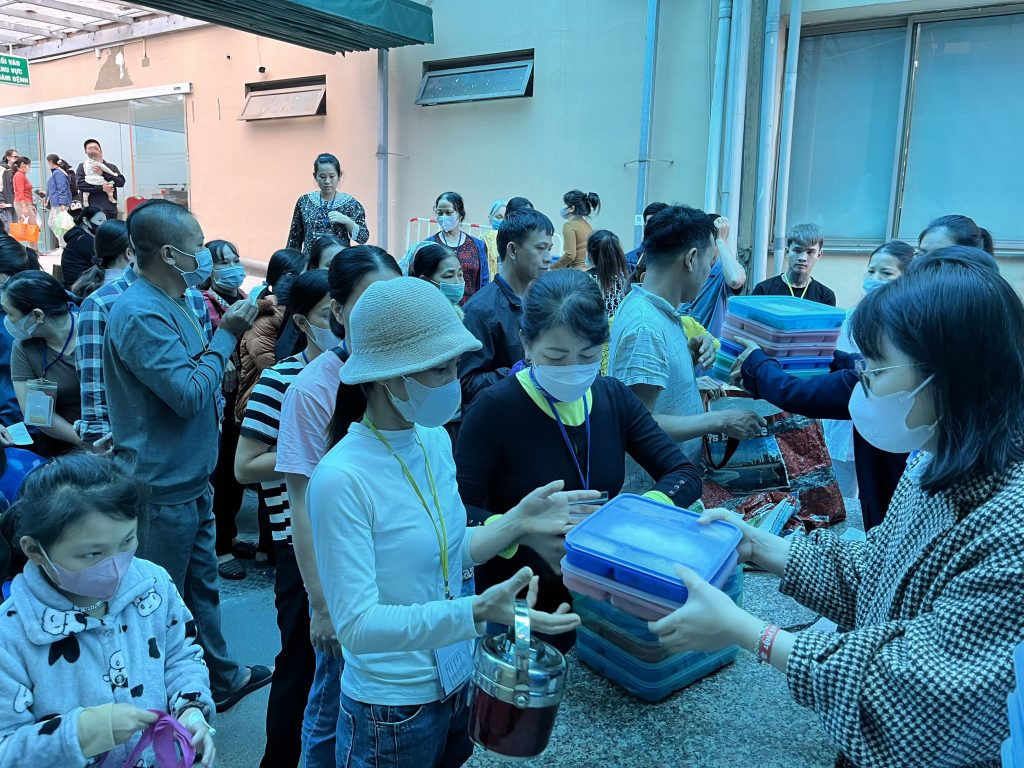 Thấu hiểu được hoàn cảnh của những bệnh nhân và người nhà đang phải đối mặt với khó khăn để chiến đấu với bệnh tật, CBNV PSC đã trao tặng những suất ăn miễn phí cho người bệnh với mong muốn các bệnh nhân và người thân có được bữa ăn đầy đủ dinh dưỡng, đảm bảo vệ sinh an toàn thực phẩm để có sức khỏe vượt lên bệnh tật.