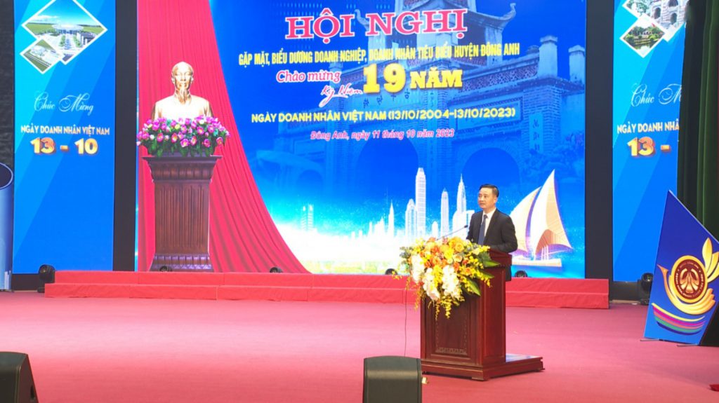 Nhân dịp kỷ niệm 19 năm ngày Doanh nhân Việt Nam (13/10/2004 – 13/10/2023), huyện Đông Anh long trọng tổ chức buổi lễ gặp mặt, biểu dương các doanh nghiệp, doanh nhân tiêu biểu, đại diện cho gần 7.000 doanh nghiệp, hợp tác xã, hộ kinh doanh cá thể thuộc các thành phần kinh tế đang hoạt động trên địa bàn. Đây là dịp để cấp ủy, chính quyền huyện ghi nhận, biểu dương những đóng góp, đồng thời động viên cộng đồng doanh nghiệp, doanh nhân tiếp tục nỗ lực phấn đấu, vượt qua khó khăn, thách thức, tiếp tục duy trì và phát triển sản xuất, kinh doanh, góp phần thúc đẩy sự phát triển kinh tế – xã hội của huyện, Thủ đô cũng như cả nước.