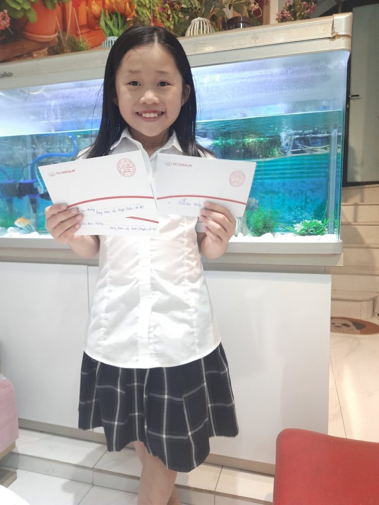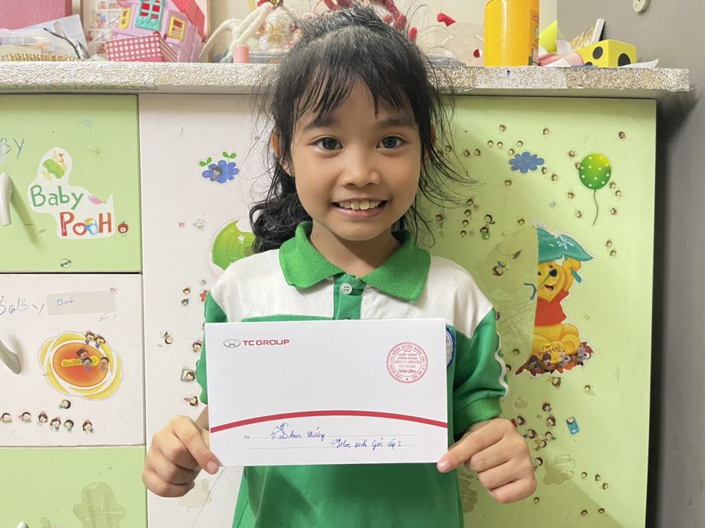 Dưới đây là một số hình ảnh các bạn nhỏ khi nhận được quà từ Công ty Bố mẹ và những gương mặt rạng ngời, chứa đựng niềm tự hào của Bố mẹ khi nhận quà khen thưởng giúp các con.
