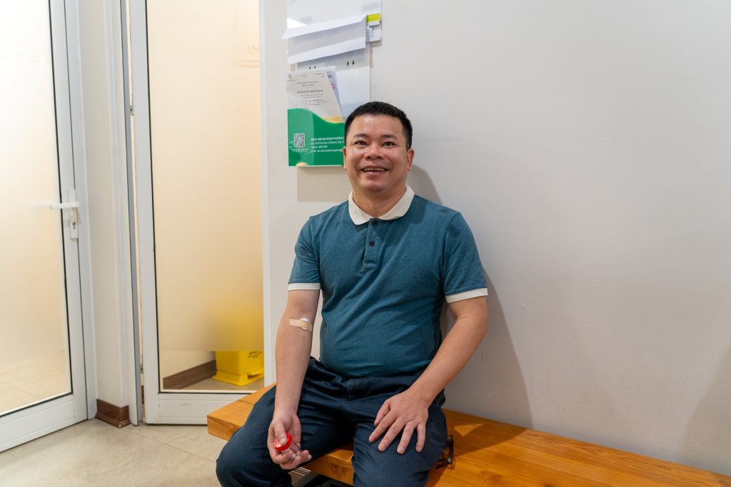 Kỹ thuật viên lấy máu cho CBNV tại Thanh Cong Tower
