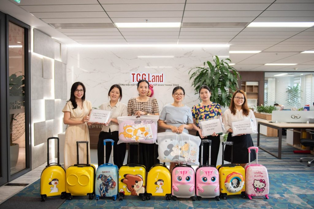 Công ty và Công đoàn TCG Land đã tặng cho các bé thiếu nhi những món quà thiết thực như Vali du lịch, bộ đồ dùng học tập.